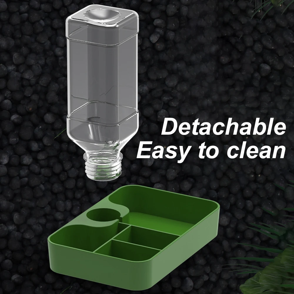 This 1PC automatic reptile feeder and water bowl provides a convenient and reliable hydration solution for small animals, including turtles, geckos, lizards, and maned lions. Designed to fit in corners, it saves space while offering easy access for pets. The included water bottle automatically refills the dish, ensuring a continuous supply of fresh water and reducing the need for frequent monitoring. Made from durable, pet-safe materials, it withstands daily use and provides long-lasting performance. Its simple setup allows for hassle-free installation in terrariums of various sizes. Perfect for maintaining hydration for reptiles and small animals, it promotes health and well-being by ensuring they always have water available. The compact, space-saving design fits seamlessly into any habitat while remaining easy to clean. Ideal for pet owners who want a low-maintenance, efficient, and reliable watering solution for their terrarium pets.