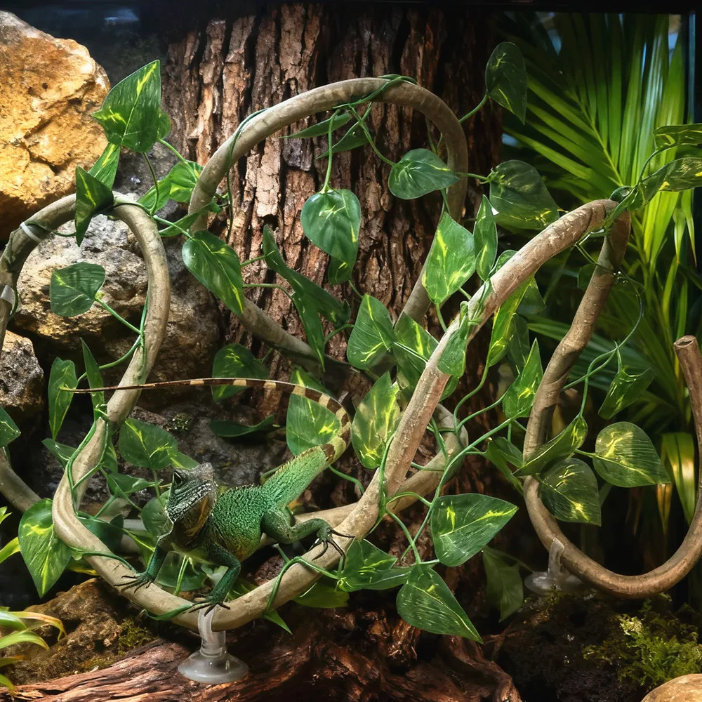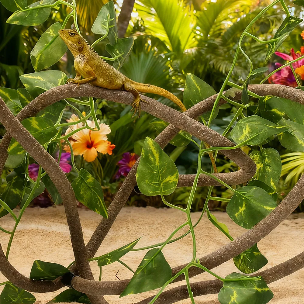 These flexible artificial reptile vines provide a realistic climbing surface that enhances any lizard, gecko, or reptile terrarium. Designed to mimic natural jungle vines, they create a safe and stimulating environment that encourages natural climbing behaviors. The bendable construction allows you to shape and position the vines however you like, making it easy to customize your pet’s habitat. Made from durable, pet-safe materials, they maintain their shape while offering excellent grip for reptiles of all sizes. Perfect for adding vertical space, they help reptiles stay active and mentally engaged. The natural-looking texture blends seamlessly with other terrarium décor, creating a lush and visually appealing environment. Easy to clean and long-lasting, these vines are ideal for both desert and tropical enclosures. Whether used as a climbing element or decorative piece, they enhance your pet’s habitat with style, function, and enrichment.
