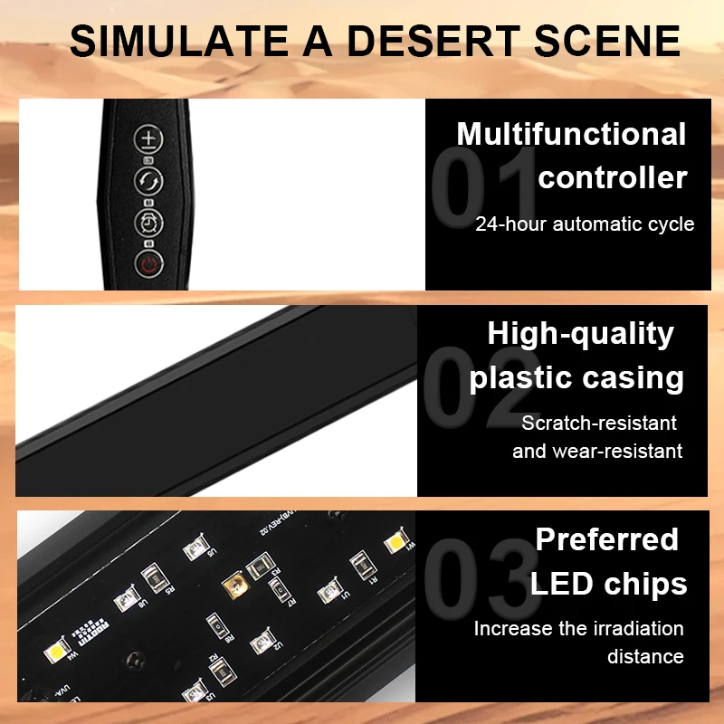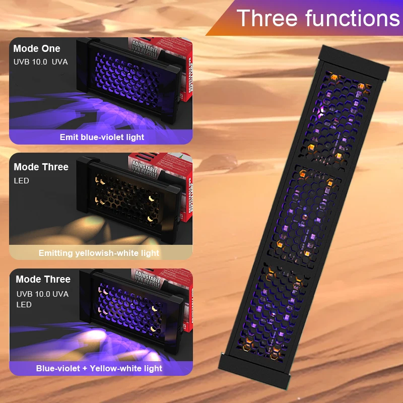 This full spectrum 10.0 sun lamp provides essential UVA and UVB lighting to support the health and vitality of reptiles such as turtles, lizards, and snakes. Designed to simulate natural sunlight, it promotes proper digestion, bone strength, and overall energy levels. The high-output 10.0 UVB ensures optimal calcium absorption, helping prevent metabolic bone disease in reptiles that require strong UV exposure. Its built-in heating function creates a warm basking area that encourages natural sunbathing behavior. Compatible with 110–240V power, it offers reliable performance in various regions and setups. The bright, full-spectrum illumination enhances visibility inside the terrarium while improving your reptile’s day-night rhythm. Durable construction ensures long-lasting use, even in high-humidity environments. Easy to install, it fits most standard lamp holders and terrarium fixtures. Perfect for desert and sun-loving species, this lamp provides both vital light and heat in a single solution. A must-have for reptile owners seeking a safe, effective, and naturalistic lighting source.